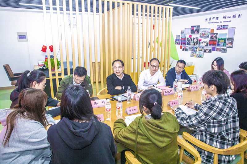石旭明对与会学生代表提出期望,勉励大家勤思考多实践,以良好的工作、学习习惯更快促进自身成长。