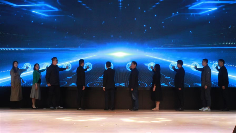 开幕式现场,与会领导、嘉宾共同按下大屏,正式启动学院首届语言文化节。