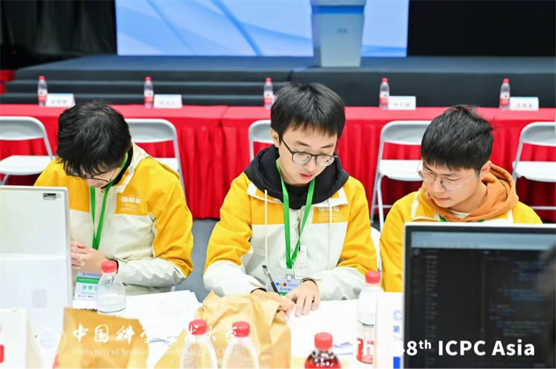 “第一场线下国际大学生程序设计比赛(合肥站),我担忧过是否会因压力过大而出现发挥不好的情况,而事实也与我的预期相符。”在简单的题目上,江亚君和团队成员出现错误,眼看周边的队伍都陆续“Accepted”,而他们还在被“Wrong Answer”环绕,不禁急得浑身冒汗。坚持尝试四次操作后,主办方告诉团队,测评机出现问题。“那一刻,我觉得我们输定了!”他颓丧着,“但无数次训练赛累积的经验,让我立马想到处理这种紧急情况的方法,我及时安慰心态崩溃的队友,同时指定一位队友按照前期既定策略继续上机写代码。”
