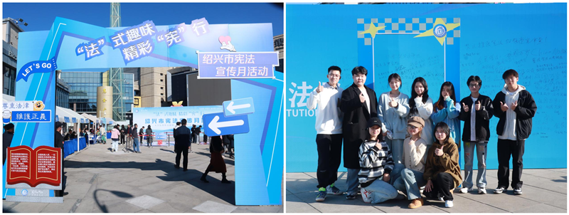 在校内,分院以赛促学,掀起宪法学习热潮,先后开展宪法知识竞赛和“法学杯”辩论赛,吸引众多法学学子参与。国家宪法日当天,宪法晨读活动与宪法宣誓仪式先后举行,同学们以饱满的热情,高昂的声音,展现对宪法的崇高敬意与高度认同。“宪趣同行,章显法韵”主题游园活动通过精心设计游戏环节,营造尊崇宪法、学习宪法的浓厚氛围。此外,还联合民生银行绍兴分行开展宪法宣传交流活动。