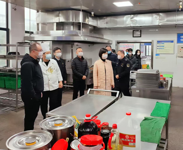 12月12日下午,越城区委常委、宣传部长吴萍在越城区市监局、东浦街道办等相关负责人陪同下来院检查指导食堂工作。学院院长沈红卫、资产经营公司负责人等陪同检查。