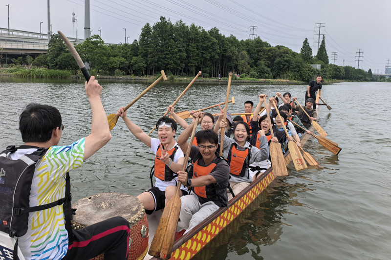 活动当,教职工们齐聚明德桥码头,在学院龙舟队李柏辰教练指导下,进行下水前热身运动,在详细了解龙舟运动基本技巧与安全事项,分组有序登上龙舟,开启体验之旅。随着高亢的鸣笛声响,龙舟队紧跟鼓点,劈波斩浪提浆、下腰、破水、出水……动作整齐划一,挥浆强劲有力,节奏紧凑高效,宁静的湖面掀起层层水花,激昂的加油声与呐喊声交织回荡在空中。活动很有意义既提升了运动技能,又体验了传统文化竞渡的乐趣大家纷纷表示。