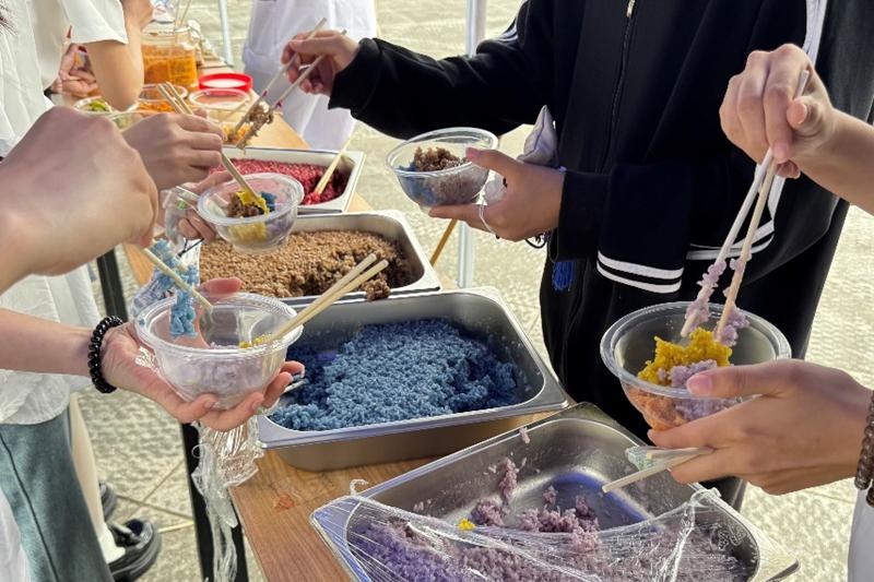 在香囊制作区,艾叶、藿香、苍术、薄荷等中药材琳琅满目摆放着。伴随着专业人员对端午习俗与医药智慧的生动讲解,师生们亲手制作中药香囊,在穿针引线间领悟“慎微慎初”的廉洁真谛。“廉洁五彩饭团”“清风投壶”等趣味互动环节,让师生们在欢乐中感受廉洁文化的魅力。