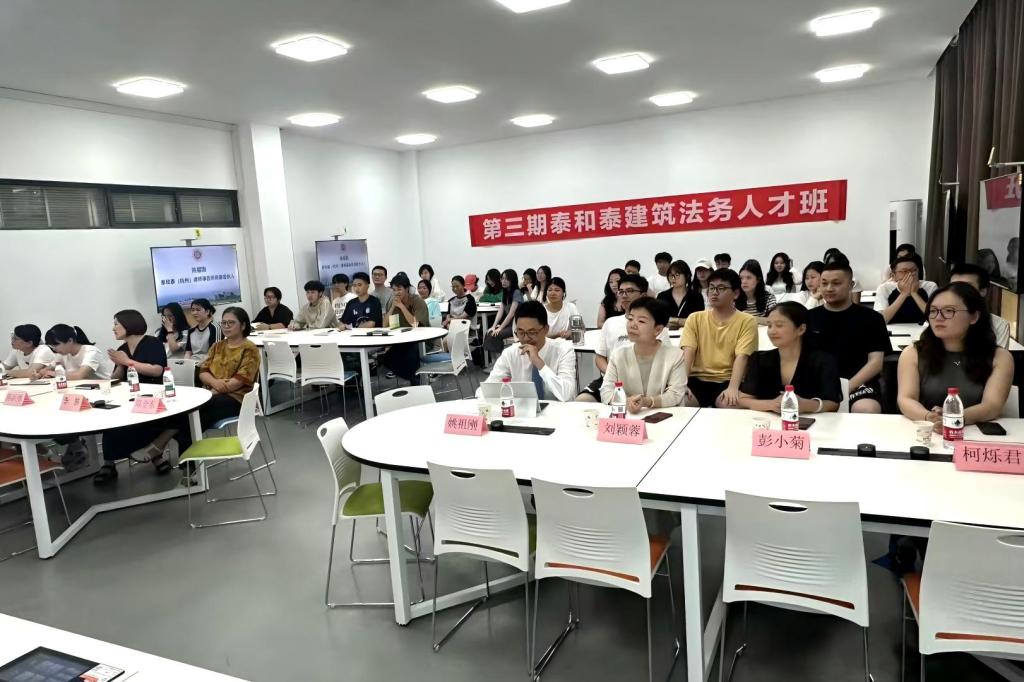 7月1日,我院举行泰和泰建筑法务人才班(第三期)开班仪式,同期为第二期学员颁发结业证书。泰和泰(杭州)律师事务所高级合伙人姚祖刚等4位律师、学院副院长李黎、梁柏台法学院相关负责人以及师生代表参加仪式。