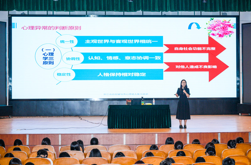 为让这份“身边的温暖”更具专业厚度,本次培训特邀绍兴文理学院心理中心主任顾玲玲、绍兴理工学院心理素质教育中心谌劲波两位老师授课。授课教师结合大学生群体心理案例,以互动教学形式,全面解析常见心理问题识别要点、危机干预规范流程,系统讲解倾听共情、情绪接纳等核心沟通技巧,引导学子真切体会陪伴的深层意义。“原来默默陪伴也是一种有力支持,今后我知道如何为身边同学提供帮助了。”一位参训学生深有感触地说。
