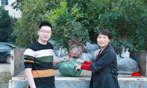日前,记者跟随学院校友联络办公室、基建后勤处的老师们一同来到张春华在长兴县龙舌咀村的家中,一行人刚到时,张春华正在细心的将刚挖好的红豆杉根部包好,用红丝带紧紧的扎住,依次放在路旁,等到将180株红豆杉树全部装车结束时已是天色渐暗,张春华告诉记者,他打算当天晚上直接将杉树运抵母校,种植在北区的草坪上。“真是期待着来年开出的一片火红呢!”望着这些细心栽培出来的小树苗,忙碌了一天的张春华笑着说,“红豆杉有非常好吸毒和防癌的功效,开花结果时一片火红,就像母校的事业前途红火一样,寓意非常好,而且这个季节很适合红豆杉的移植播种,这次家中正好种植了一片,想着借这个机会表达对母校的培育之恩。”作为校友,张春华用自己独特的方式来反哺母校,毕业多年,他深深感恩母校的栽培,也一直密切关注着母校的发展。他发自内心的笑声,真实流露出对母校的一片真挚情谊,以及能为母校贡献自己一份心力的激动和喜悦之情。