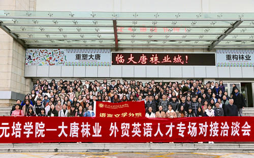 企业考察环节结束后,学生们来到中国袜业城,参与分院与大唐镇政府共同举办的外贸英语人才专场对接洽谈会。招聘会现场气氛热烈,学生们纷纷投出简历,并有多人当场达成就业协议。大唐镇政府与当地企业给予我院毕业生高度评价,表示期待更多的元培学子加入大唐袜业,共促发展。