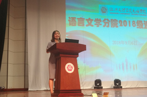 9月6日晚,语言文学分院2018级迎新大会在我院国际文化交流中心报告厅举行。优秀校友陈玉婷(共青团第十八次全国代表大会代表、绍兴市越城区团委兼职副书记)出席大会。语言文学分院负责人、各教研室主任、2018级各班班主任、全体2018级学生及部分家长代表参加大会。