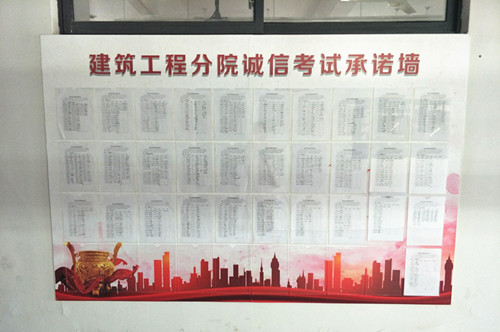 期末考试临近,为弘扬诚实守信的社会道德风尚,加强学生诚信考试教育,近日,建筑工程分院以开展主题班会、签订学生诚信考试承诺书等活动为抓手,进行“诚信”考试主题教育宣传。