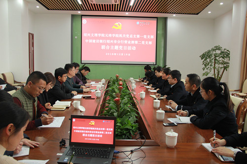 为进一步加强与建行绍兴分行的党建共建合作,全面增进党支部交流,推动双方共同发展。根据工作安排,经双方支部支委会研究,12月19日下午,我院机关党总支第一党支部与建行绍兴分行营业部第二党支部在国际文化交流中心会议室联合开展“学原著、悟原理,加强基层支部战斗堡垒作用”主题党日活动。两个支部全体党员同志参加活动。学习活动由学院机关党总支第一党支部书记徐锋主持。