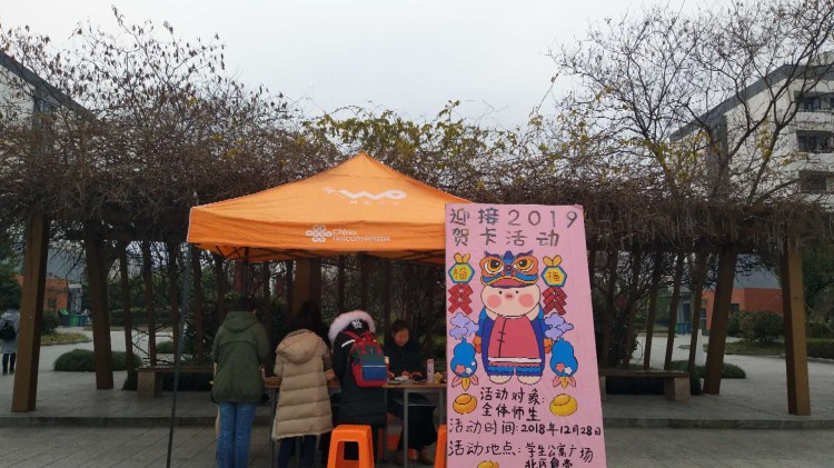 为辞岁迎新、传递真情,12月28日,经济管理分院举行“迎元旦,庆新年”贺卡邮寄活动。分院志愿者们分别在南区公寓广场、北区食堂设摊点,鼓励师生们用贺卡的形式将情感传递给身边重要的人。全天共有800余名师生参加活动。