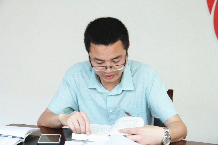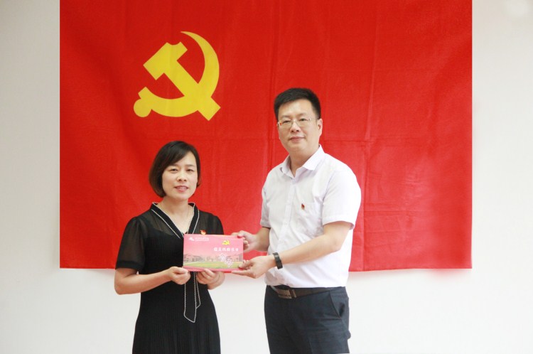 6月27日下午,在图书馆830党员之家,机关党总支第一党支部党员俞国芬在鲜红的党旗面前,接过支部书记送上的由学校党委书记汪俊昌亲笔签名的党员政治生日贺卡,接受党组织的祝福。支部全体党员共同见证仪式并进行六月份支部理论学习。学习会由支部书记徐锋主持。