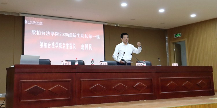 9月22日上午,梁柏台法学院2020级新生见面会暨新生第一课在学院红色学府举行。梁柏台法学院名誉院长、浙江大学博士生导师翁国民教授为155名新生作“院长第一课”。分院领导、新生班主任和全体2020级新生参加典礼。典礼由分院副院长陈金东主持。
