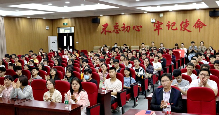 翁国民教授以“传承红色基因,打造治国之才”为题,为同学们讲授家国情怀和灵魂责任。他从梁柏台先生的事迹谈到传承红色基因,从教学经历谈到职业生涯,从“法”的起源谈到中国特色社会主义法治,希望同学们做有责任的法律人、做有灵魂的读书人、做有理想、有抱负的青年学子。他还结合很多实际案例,指导新生们要学会自律、懂得反省、管理时间、明确方向、实现目标,做一个政治正确、专业精通、身心健康、充满活力的大学生。