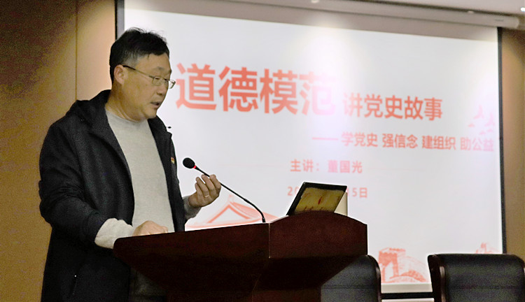 4月15日下午,中华十大信义人物之一、绍兴市道德模范、“点亮一盏灯”网络爱心活动的发起人和实践者——董国光为我院青年学生党员作了题为“道德模范讲党史故事——学党史、强信念、建组织、助公益”专题讲座。