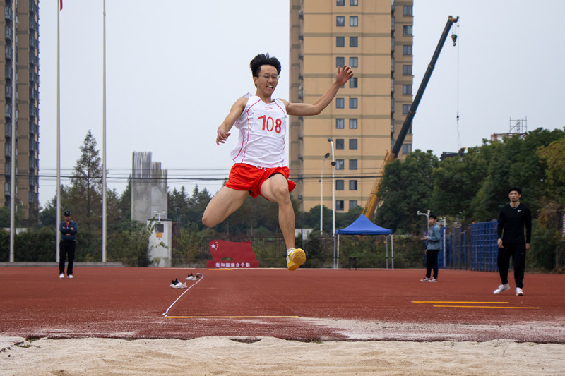 蓄力、助跑,摆动手臂、起跳腾跃,“6米05!”园林2002班陈晨跃一跳定乾坤,继一星期前夺得校运会男子跳远金牌之后,再次以6米05的成绩登上院运会男子跳远的最高领奖台。