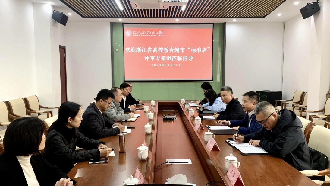 11月30日上午,浙江省高校教育超市“标准店”评审专家组组长王锡渡一行对我院超市进行评审验收指导。资产经营公司负责人、商贸服务中心及超市相关负责人参与评审。
