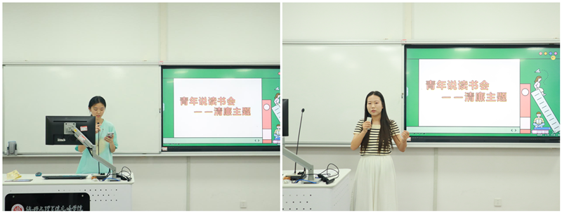 分享会上,同学们纷纷上台,以生动的语言、真挚的情感,讲述《大江大河》、《人民的名义》、《清贫》等书籍中有关廉洁自律的故事,分享阅读感悟与启示。