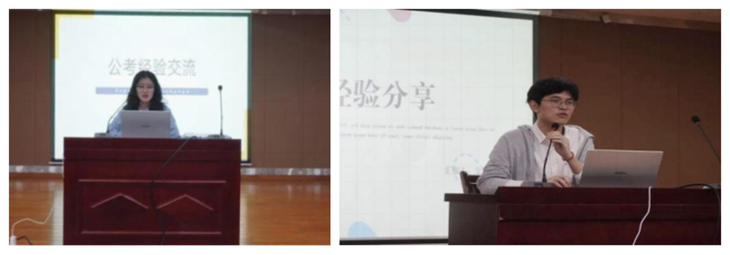 毕业前夕,梁柏台法学院在红色报告厅先后举办考研经验分享会和“考公”经验分享会。金盈盈、金日腾、章益铭三名同学针对研究生备考相关事项,对学弟学妹提出实用性建议和具体备考举措;连立阳、牟雅婷两位同学分享公务员备考经验,助力法学学子“考公”之路。