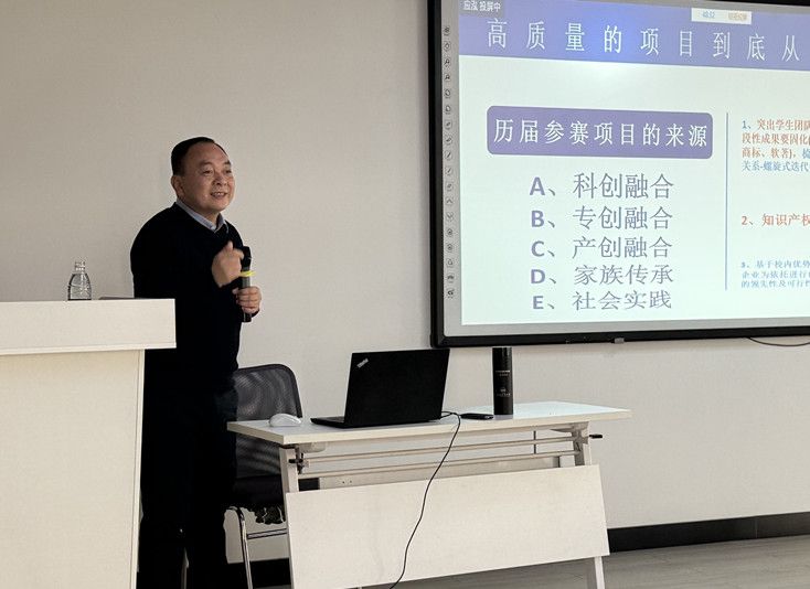 在专题培训环节,两位专家围绕大赛备赛核心要点展开深度分享。钱迅雷立足自身实战经验,深入解读大赛评审规则,剖析2026年赛事发展趋势,围绕项目挖掘、培育与打磨,全流程梳理备赛思路;刘祖宏聚焦项目核心竞争力提炼,分析破解项目同质化痛点,分享打造项目差异化优势的实操方法,兼具理论深度和实践指导意义。