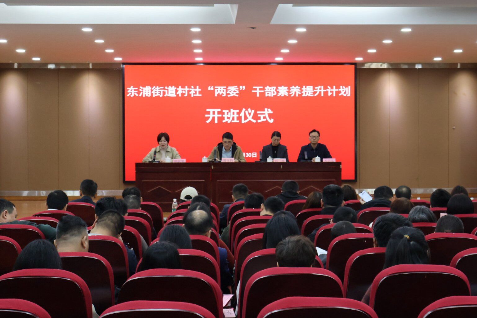 开班仪式在红色报告厅举行,马克思主义学院党委副书记陈跃男代表学院致辞,东浦街道组织委员葛文钧作动员讲话。葛文钧在讲话中阐述了本次培训的重要意义,他指出村社“两委”干部肩负着推动乡村振兴、深化基层治理、服务一方百姓的重要职责,要聚焦主责主业,着力提升履职尽责的过硬本领。他要求村社干部在强化政治引领上作表率,在抓好基层党建上出实招,在服务发展大局上勇担当,端正学风作风,确保培训取得实实在在的效果。继续教育学院副院长孙燕欢迎村社干部到绍兴理工学院参加培训,她表示此次培训作为继续教育学院的首个培训项目,奠定了校地互信、深化合作的基础,学校将以优质资源做好服务,助力街道人力资源优化和乡村振兴。